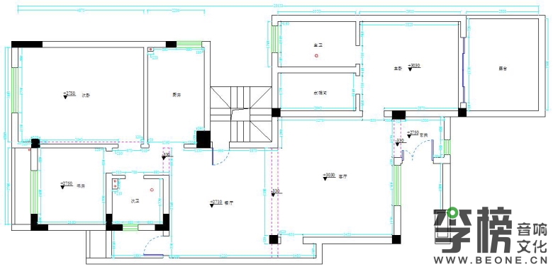 一、首先对客厅与餐厅进行分区,共分为:走道、客厅、餐厅三个区域、三个不同高度的错层;