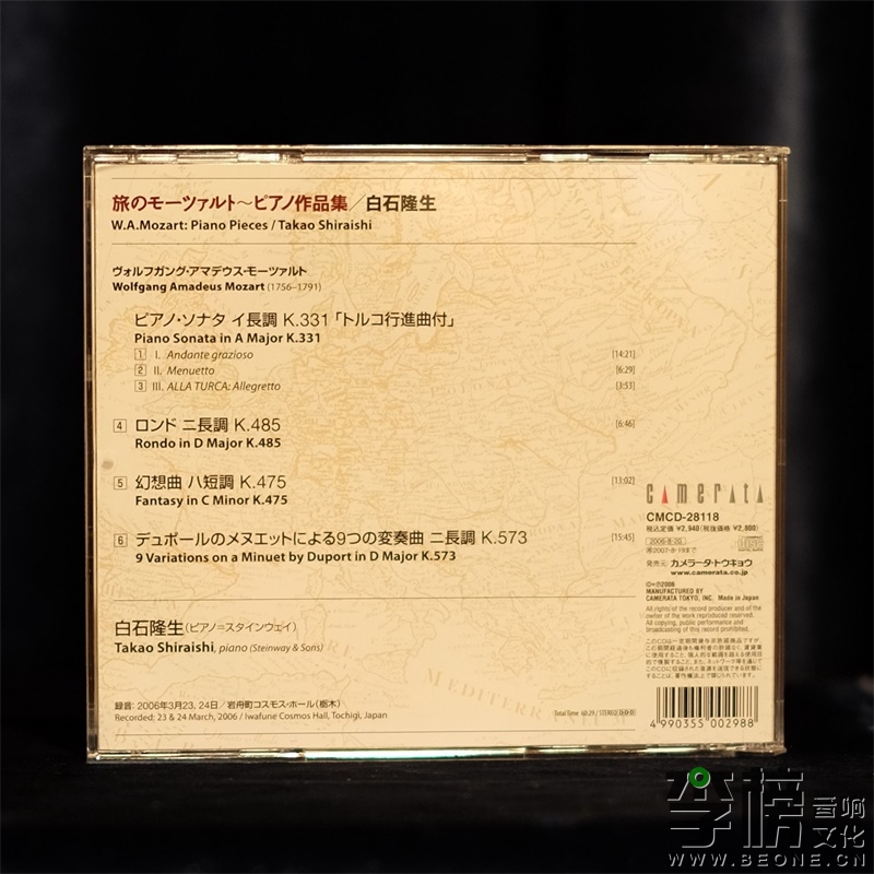 莫扎特的音乐“优美流畅,轻快欢愉,充满阳光”,而白石隆生的演奏又特别的“轻快流畅、清纯高调”,似乎又非常“应对了”莫扎特的这一音乐特征,连带着感觉演奏者本人都是一位“纯粹”之人;除了C小调钢琴奏鸣曲K475之外,其他三部作品包括:A大调钢琴奏鸣曲K331、D大调钢琴回旋曲K485与D大调钢琴变奏曲K573,都具有这种明显的听音感受……