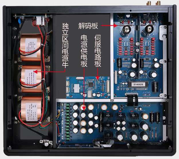 HD-555 CD机采用扎实厚重的铝合金机箱,其厚度为 8mm,以及粗状的锥形可调机脚,其硕大厚重的圆形机顶支撑着激光头的整套光学系统,令其机械性能稳定,扎实沉稳,其避震特性非常良好,不会受到外围震动的影响而出现音染,杂波震动均会被阻挡和吸收,微小的数码激光信号不会受到震动的影响,音乐信号由此变得纯净,保证声音醇厚干净,这正是高级 CD机设计的关键环节所在!