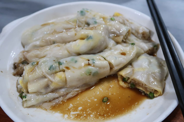 然而,更让我难忘的还有那碗新兴特产“葱花蛋肠”!唉!多少年了,类似的肠粉在广州、深圳也没少吃过啊,但这家的“葱花蛋肠”的汤料味道可真的是独特之极、鲜美之极!